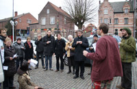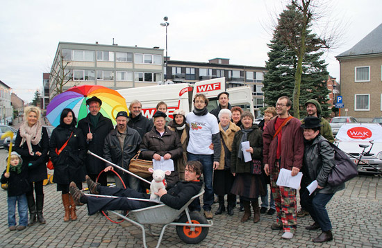 KRUIBEKE. De Kruibeekse Week van de Amateurkunsten is zaterdag reeds op gang gekomen. Deelnemende kunstenaars hebben zich verzameld om nu al met elkaar kennis te maken. Ze stapten voorzien van opvallende attributen naar Den Hof in den Kerckhoek waar over het concept werd gepraat en vervolgens bezochten ze de nieuwe gebouwen van de aanleunende verkaveling D’Eer waarin in de nieuwe appartementen zal tentoongesteld worden in het kader van WAK 2011 in april.