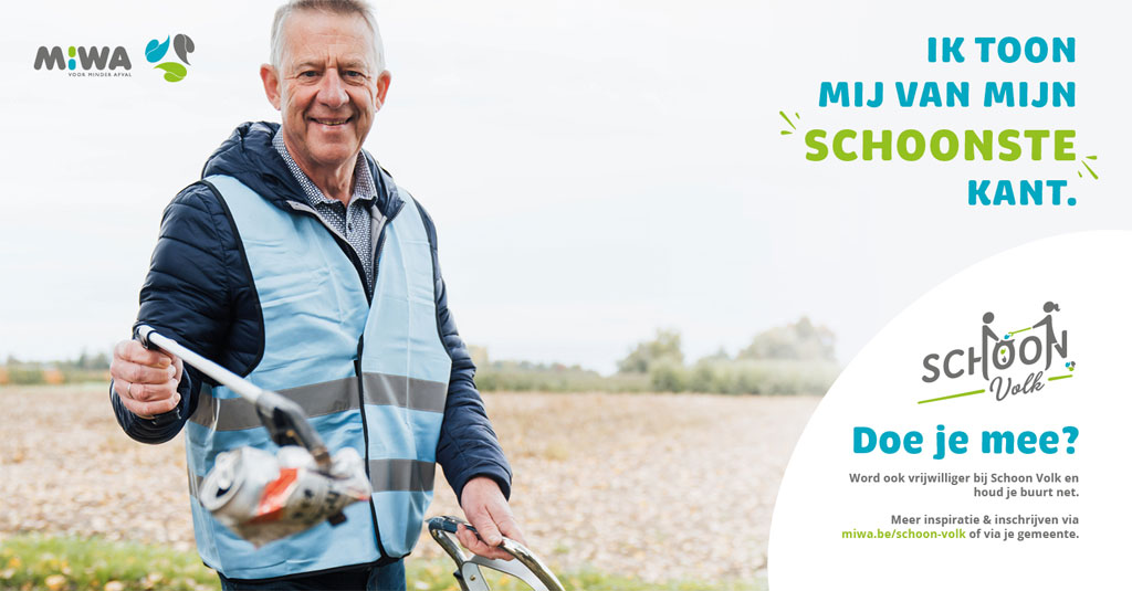 Onder de noemer ‘Schoon Volk’ ruimen al zeven jaar geëngageerde vrijwilligers regelmatig zwerfvuil in hun eigen woonomgeving. Afgelopen seizoen verwelkomde MIWA de 1100ste vrijwilliger en er kunnen er nog altijd bij. Iedereen kan meehelpen als zwerfvuilvrijwilliger. Het leuke is dat vrijwilligers zelf kiezen hoe vaak er ze er op uit trekken: enkele keren per jaar of maand of wekelijks. Sommigen gaan alleen op pad, terwijl anderen er een gezinsactiviteit van maken.