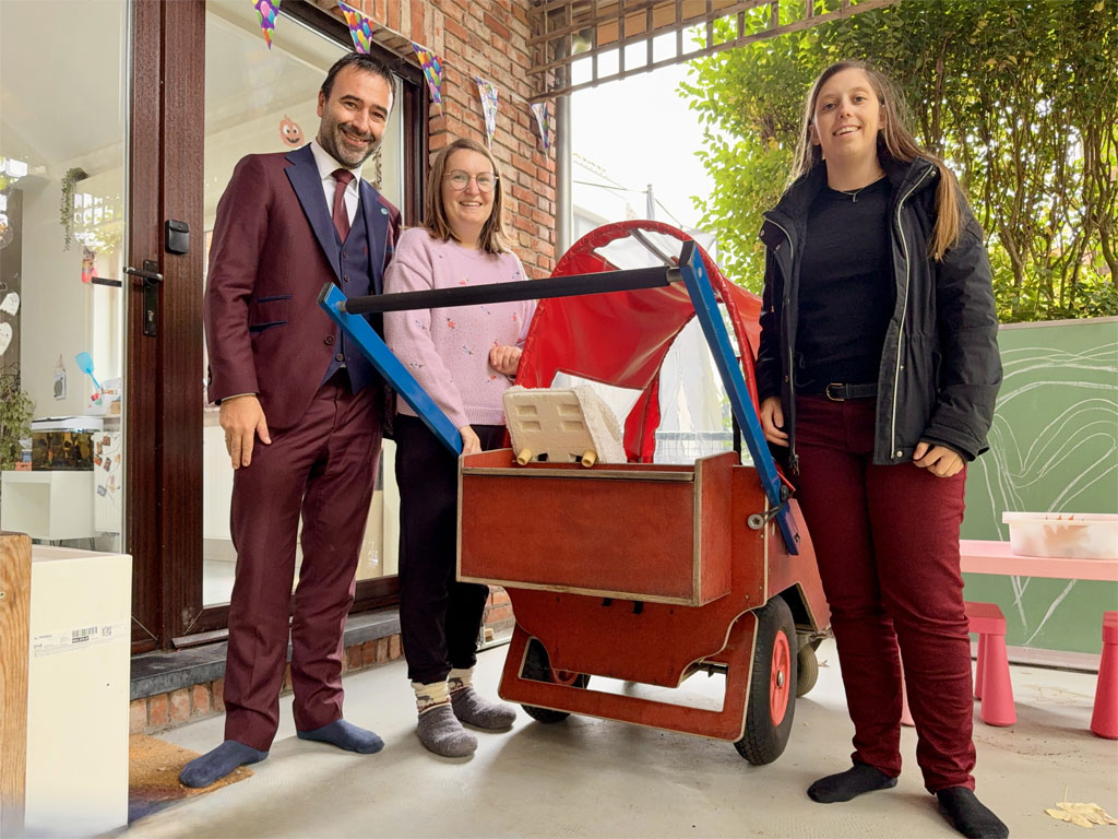 Sofie De Smedt gooide na een carrière in de farmasector het roer helemaal om en schoolde zich om tot kinderbegeleidster. Eind oktober kreeg ze van het Vlaams Agentschap Opgroeien haar vergunning en nu ontvangt ze de eerste kindjes in de Polenlaan. Dit doet ze onder de vleugels van de Kinderopvangdienst. Ze kreeg deze week niet alleen kleine kindjes op bezoek, ook burgemeester en Vlaams Parlementslid Koen Daniëls en schepen van kinderopvang Lauren Van Guyse bracht de kersverse onthaalmoeder een bezoekje. "Dat Sofie uit de farmacie komt en zich heeft omgeschoold tot kinderbegeleidster geeft aan hoe bewust ze voor de job gekozen heeft. Dat merk je direct aan de sfeer die er in de opvang hangt en de omgang met de kindjes die hartelijk en oprecht is.", zegt burgemeester Koen Daniëls. "Een aantal onthaalouders stopten in onze gemeente door pensionering, verandering van job of door de druk die ze ervaren door inspecties vanuit de hoger overheid en dan is het welgekomen dat er een nieuwe onthaalouder start.", vult schepen Lauren Van Guyse aan. Nieuwe onthaalouders mogen zich steeds aanmelden bij de gemeente. (mb, foto: © Koen Daniëls)