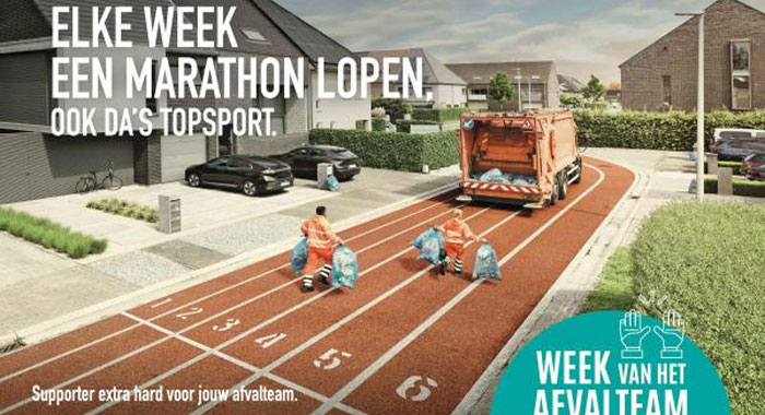 REGIO. Vandaag is de zevende editie van de ‘Week van het Afvalteam’ gestart. Dat is een initiatief van Interafval met de OVAM en Fost Plus dat het werk van afvalophalers in de kijker zet. Dit jaar is het thema ‘topsport’ want met wekelijks minstens 66.000 stappen doet het afvalteam dagelijks aan topsport.