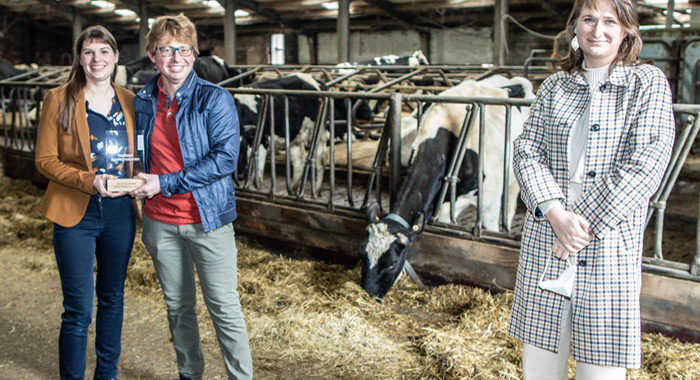 TEMSE. Heirbaut Hoeveproducten uit Temse is gehuldigd als verdienstelijke Oost-Vlamingen. Het bedrijf doen heel wat inspanningen om CO²-neutraal te werken. Met het methaangas uit koeienmest wekt het bedrijf zelf elektriciteit op. Op lange termijn wil het melkveebedrijf de emissies nog meer minimaliseren en bijkomende koolstofopslag in de landbouwbodems mogelijk maken.