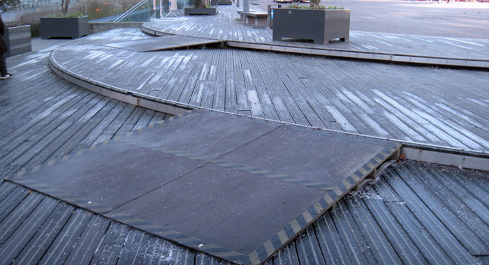 SINT-NIKLAAS. Ere-gemeenteraadslid Patric Gorrebeeck vraagt het stadsbestuur van Sint-Niklaas om de houten helling aan het standbeeld Het Woord aan de Grote Markt veiliger te maken. Vorige week kwam er een 70-jarige vrouw zwaar ten val en brak daarbij een elleboog.
