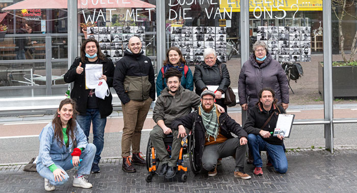 SINT-NIKLAAS. PVDA Sint-Niklaas heeft zaterdag een symbolische actie gevoerd tegen het verdwijnen van bushaltes van De Lijn. Door de invoering van het decreet ‘basisbereikbaarheid’ dreigen in het Waasland vanaf 2023 145 bushaltes te verdwijnen, waarvan 83 in Sint-Niklaas.
