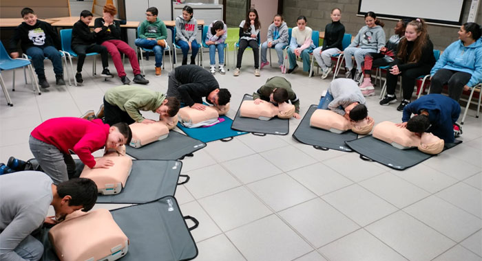SINT-NIKLAAS. De Heilig Hartschool te Sint-Niklaas behaalde gisteren, woensdag 24 januari 2024, het kwaliteitslabel 'reanimatie op school'. Om het label te behalen leerden de leerlingen van de derde graad hoe ze correct een reanimatie moeten uitvoeren en de Heimlichgreep toepassen.  Ook kregen ze een interessante uitleg over het gebruik van de AED-machine.