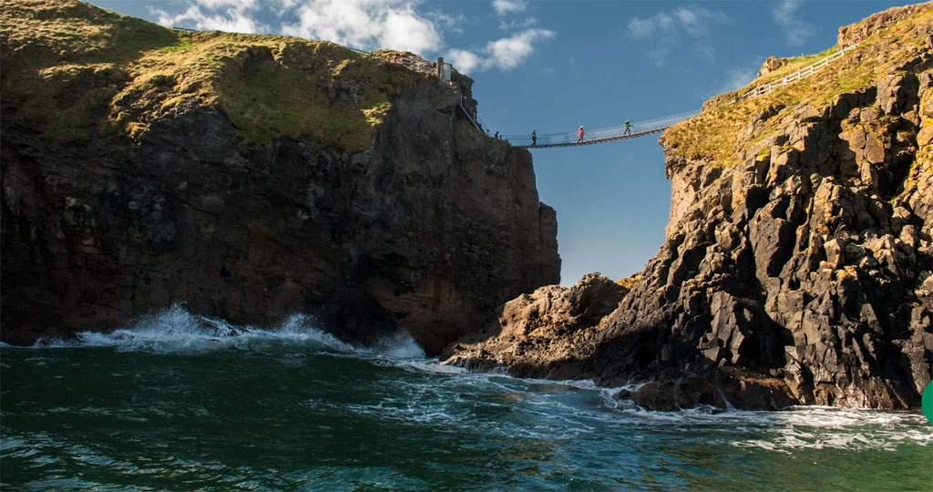 Laatste bezoek van onze driedaagse is richting de Gobbins, een wandelpad dat tegen de zeekliffen schuurt. Daarvoor hebben ze een specialist ingeschakeld. Op klokslag 9 uur ’s morgens staat Steve Patterson ons aan het hotel op te wachten. Al bij de begroeting voelt hij aan als een vriend. Als een vriend in korte broek, want het kwik mag dan 10 graden wijzen, Steve zweert op deze winterdag bij zijn korte broek. Zijn kennis van de streek is verbluffend en geanimeerd. We passeren richting de Wild Atlantic Way een openluchtmuseum van kastelen, groene weilanden, dramatische kliffen, afgelegen eilanden en sfeervolle dorpjes. We bezoeken het havenstadje Kinsale, een whiskystokerij en wandelen onder de eeuwenoude bomen van Dark Hedges in Antrim. Aan het Gobbins klifpad gaat de adrenaline fors de hoogte. Voor ons in Carrick-a-Rede doemt een gammele touwbrug op die ons naar Carrick Island brengt. Midden de 20 meter lange loopbrug worden we gul bespat door de beukende golven vlak onder ons. Missie geslaagd en we krijgen zelfs nog een diploma van ‘Moed en Volharding’ mee. Dat wordt weer opscheppen thuis.