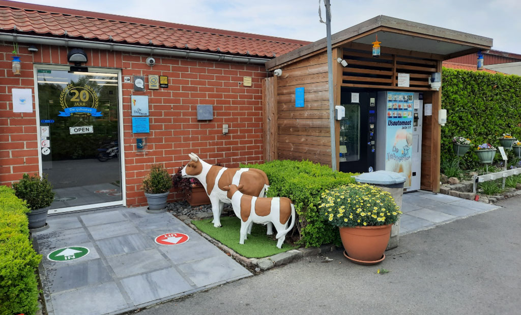 16 uur: ijsjestijd! Wie het Brugse Ommeland zegt, denkt dan onwillekeurig aan de IJshoeve in het naburige Vivenkapelle. Carine en Patrick hebben er in 28 jaar een echt paradijsje voor jong en oud van gemaakt. Met een eigen parking, een mooie speeltuin, een prachtig terras en (vooral) een waaier aan verrukkelijke ijsjes in alle smaken en kleuren, gemaakt van dagverse melk van de eigen koeien op de boerderij. Als een Rupsje Nooitgenoeg bestel ik drie bollen en voel niets dan dankbaarheid voor zoveel lekkers. Dat de IJshoeve een paar jaar geleden tot winnaar van de Award voor de betere Kind/Fietsvriendelijke horecazaak geridderd werd, is zeker niet toevallig. Ik heb geproefd, dus ik geloof.