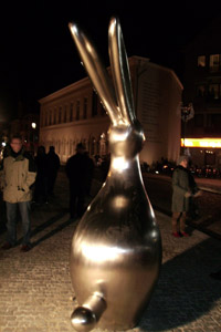Volgende stap in de festiviteiten was de inhuldiging dichtbij de Durme van een nieuw kunstwerk: "De drie hazen", van de in Antwerpen wonende kunstenaar Luc De Backer. De hazen werden gekozen uit meer dan 50 ingediende ontwerpen. Het kunstwerk kost 38.902 euro en is gemaakt in inox, in een strakke moderne vormgeving.
