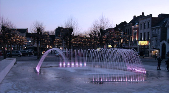 Ondertussen is op het evenementenplein tegenover het postkantoor ook de nieuwe fontein in werking gesteld. Vooral ’s avond geeft dit mooie effecten door kleurige belichting.