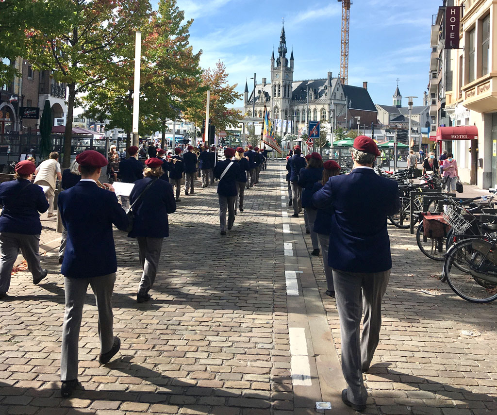 SINT-NIKLAAS. Tien maanden was het geleden dat deKunstvrienden in het openbaar zijn opgetreden. In een veertig meters lange muzikale colonne trokken ze op autovrije zondag door het centrum. Aan de terrassen op Houtbriel, Stationsplein en Grote Markt werd halt gehouden voor een corona-proof serenade aan een dankbaar publiek. Voor enkelen uit de nieuwe lichting klaroenen en tamboers was het hun maidentrip.