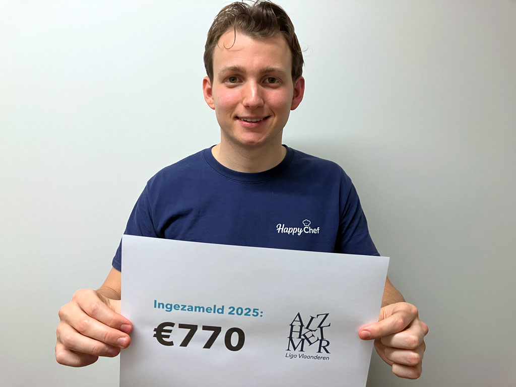 De 24-jarige Thibault Van de Sompele steunt met zijn platform happychef.be, een reserveringssyteem voor restaurants, het onderzoek naar de ziekte van Alzheimer. "Van elke euro winst die wij met HappyChef maken, gaat 10-20% rechtstreeks naar Alzheimeronderzoek” schrijft hij op z’n website. "Het was op advies van mijn grootouders dat ik besloot specifiek dit onderzoek te steunen", zegt Van de Sompele, "Ik wil hen oud zien worden zonder dat ze hun persoonlijkheid verliezen. Dat is mijn grootste angst." Dankzij de eerste winsten kon Thibault al 770 euro doneren aan de Alzheimer Liga.