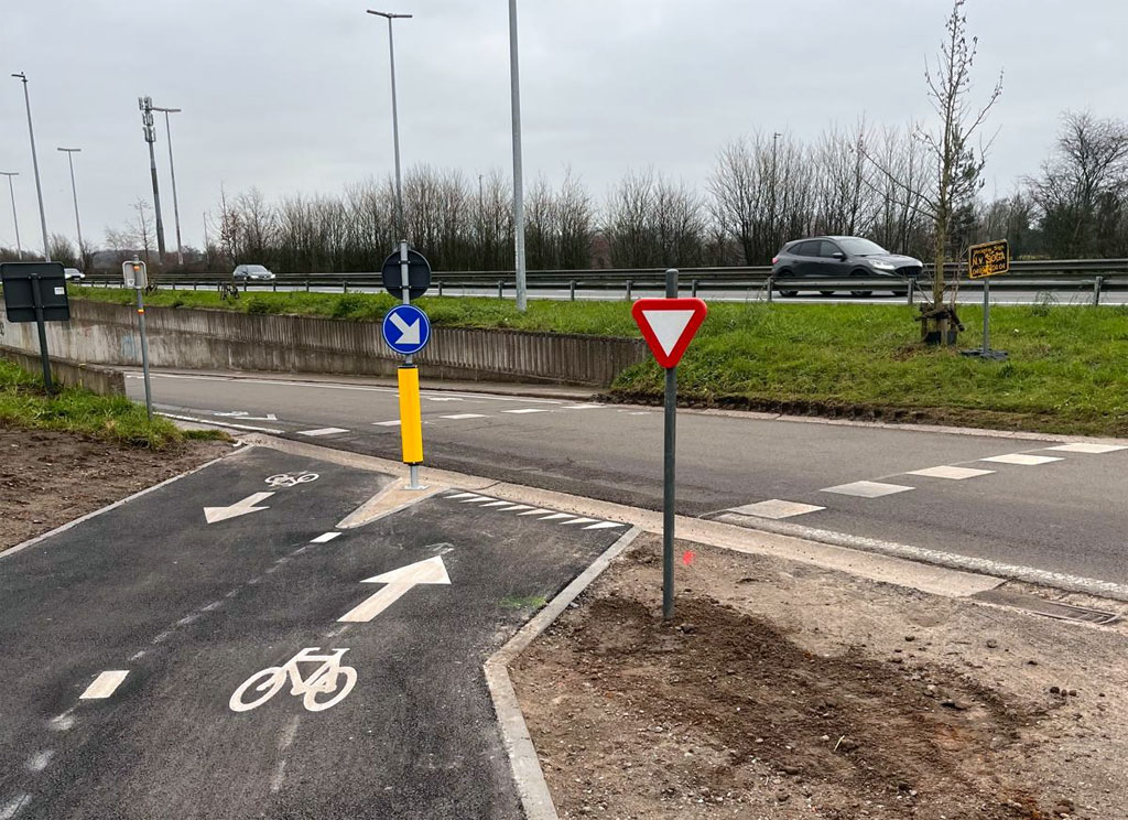 STEKENE. De werken aan de Nachtegaalstraat en de parallelweg Westakker zijn klaar en hebben het kruispunt een stuk veiliger gemaakt voor fietsers. Het kruispunt was jarenlang een gevaarlijk punt.