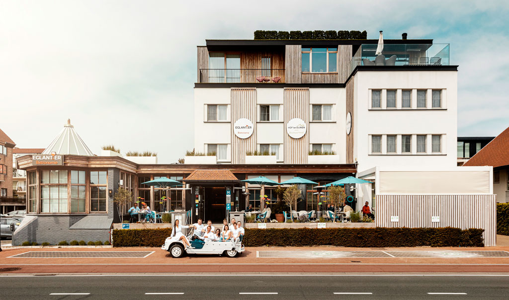 Geen betere uitvalsbasis om te kiezen dan Boutique Hotel Hof Ter Duinen op 150 meter van het strand en de kusttram stopt voor de deur. Guillaume en Savanna runnen intussen al twintig jaar deze horecaparel met veel enthousiasme. Faciliteiten genoeg met prachtige kamers, een tuin met terras, ligstoelen, lobby & wellness, een privésauna Aquarelle met voorwaar een Himalaya zoutgrot, een sterrenhemel en regendouches. Een paradijsje dat z’n weerga niet kent en overal vlakbij. Alleen al voor het uitgebreid ontbijtbuffet zou een mens een verblijf inplannen met o.a.: vers gebakken boterkoeken, roereieren, gerookt spek, een Franse kaasplank en beleg, huisgemaakte fruitsalade, confituren en appelcake. Centraal aan het meterslange buffet én niet aan te weerstaan de Callebaut chocolade plank waar je je favoriete smaak zomaar kan afsnijden. In het aanpalend restaurant Eglantier zorgen de lichte gerechten voor pure smaken en intensiteit. Vis- en vleesspecialiteiten van de bovenste plank, ganzenlever van eigen makelij, home made desserts: op de goed gestoffeerde kaart kiest de chef voor pure kwaliteit en topproducten uit de streek.